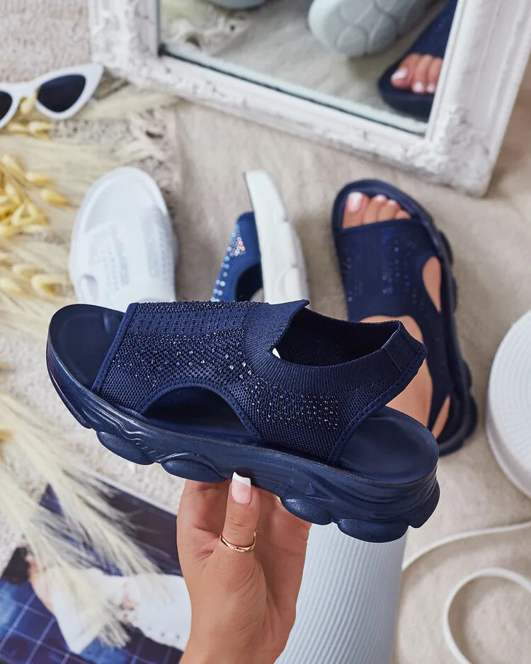 - Унікальні босоніжки з паєтками, на товстій підошві з еластичної тканини та устілкою з екошкіри. Модель сліпони. Поєднання стилю та комфорту!
