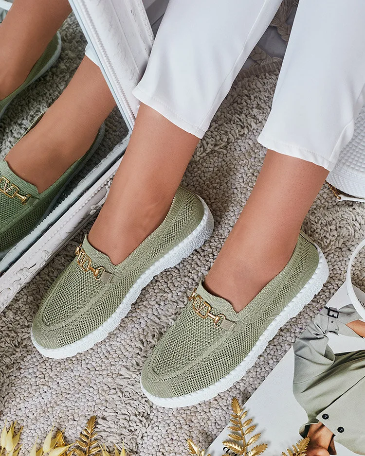 Royalfashion Жіночі тканинні мокасини із золотим декором Erticae
