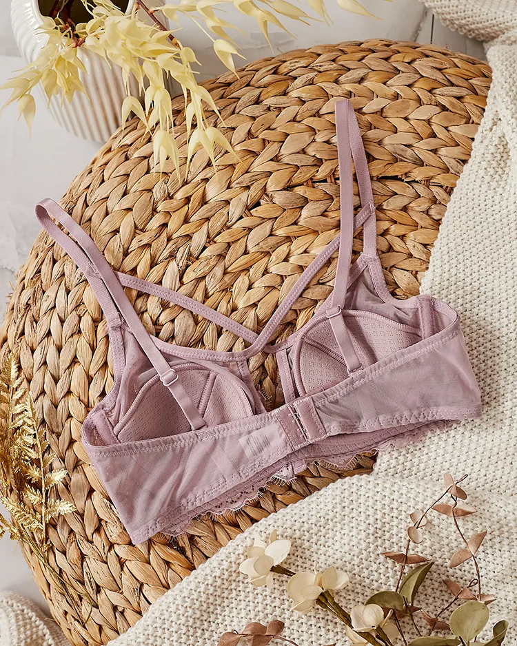 • Унікальний жіночий мереживний бюстгальтер з декоративними бретелями. Модель на кісточках, застібається ззаду на застібку-гачок. Бретелі регулюються по довжині. ПРИМІТКА: Похибка вимірювання (+/-) 1 см.