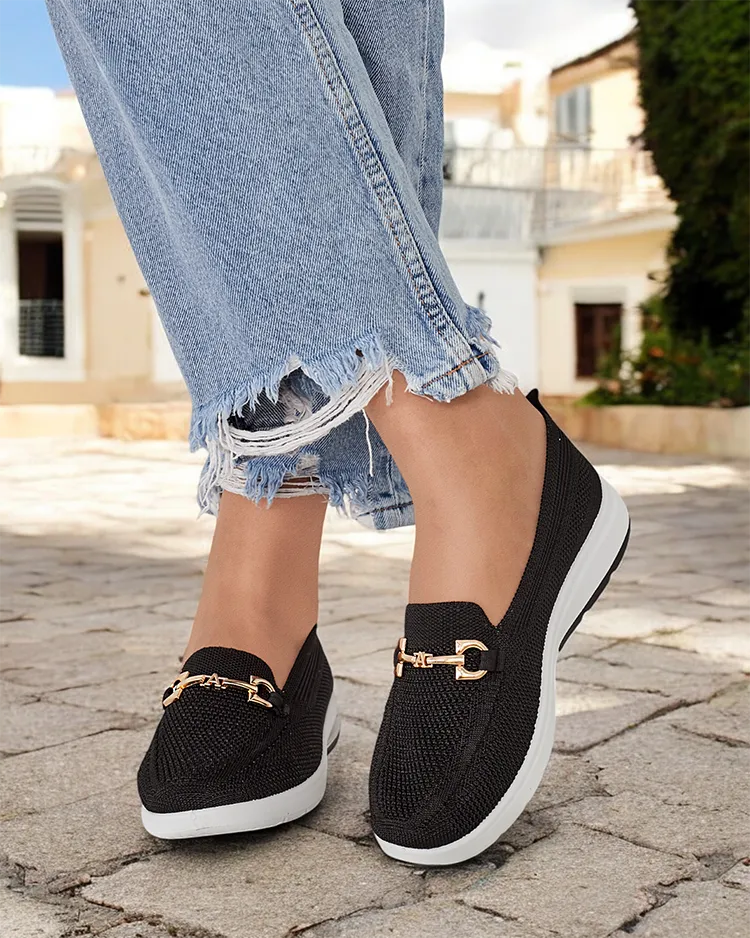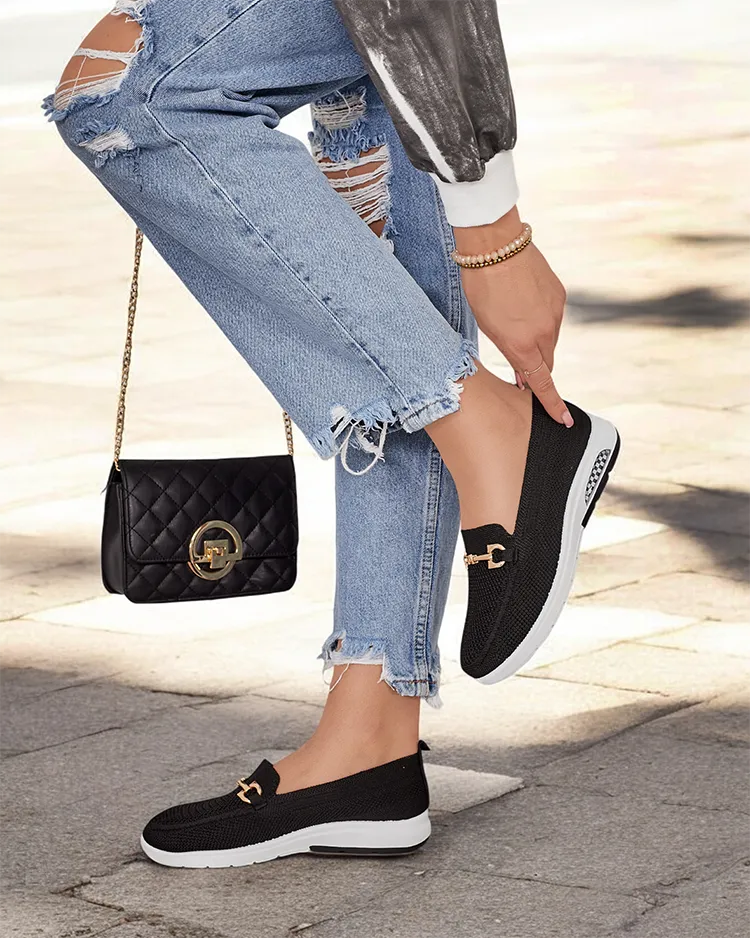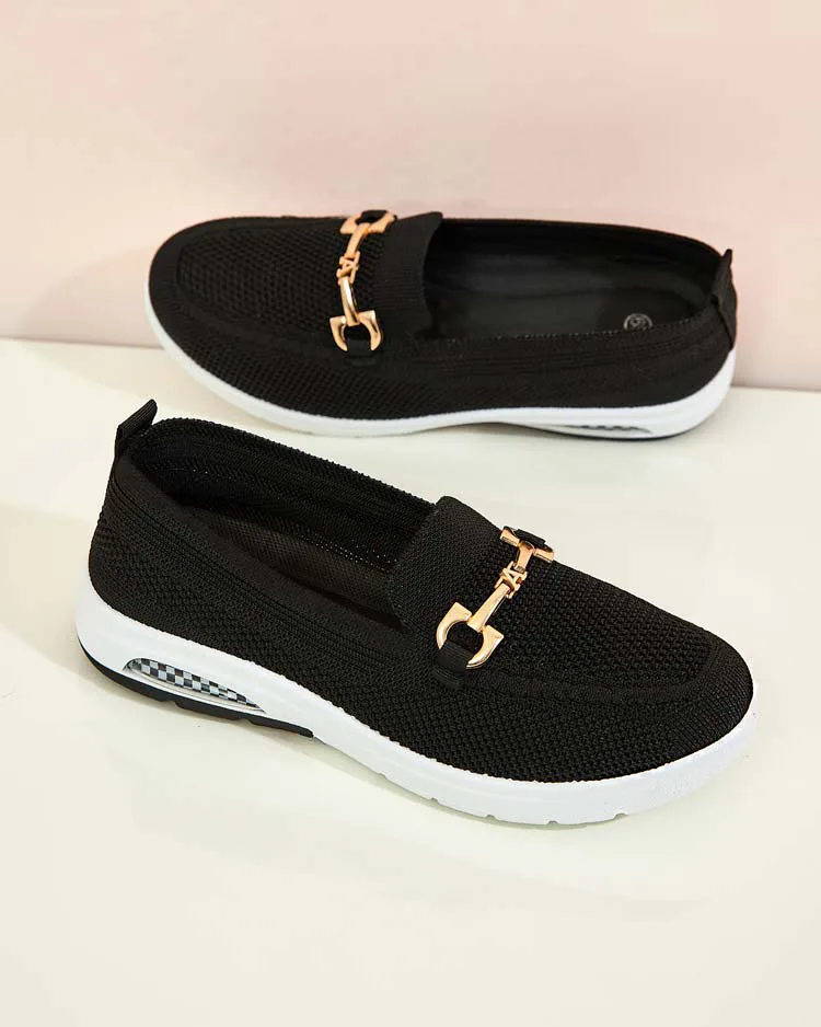 - Зручні жіночі мокасини в стилі спорт-шик. Верх виконаний з тканинного матеріалу, устілка також тканинна. Носик прикрашений золотистим металевим орнаментом. Стануть чудовою прикрасою для повсякденного стилю.