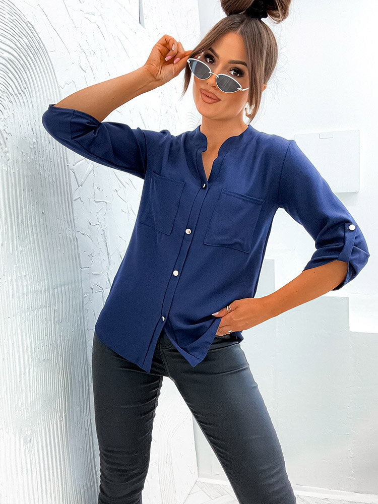 - Класична жіноча блуза а-ля сорочка з довгими, засуканими рукавами. Модель з комірцем, застібається на ґудзики. Must have в гардеробі кожної жінки!