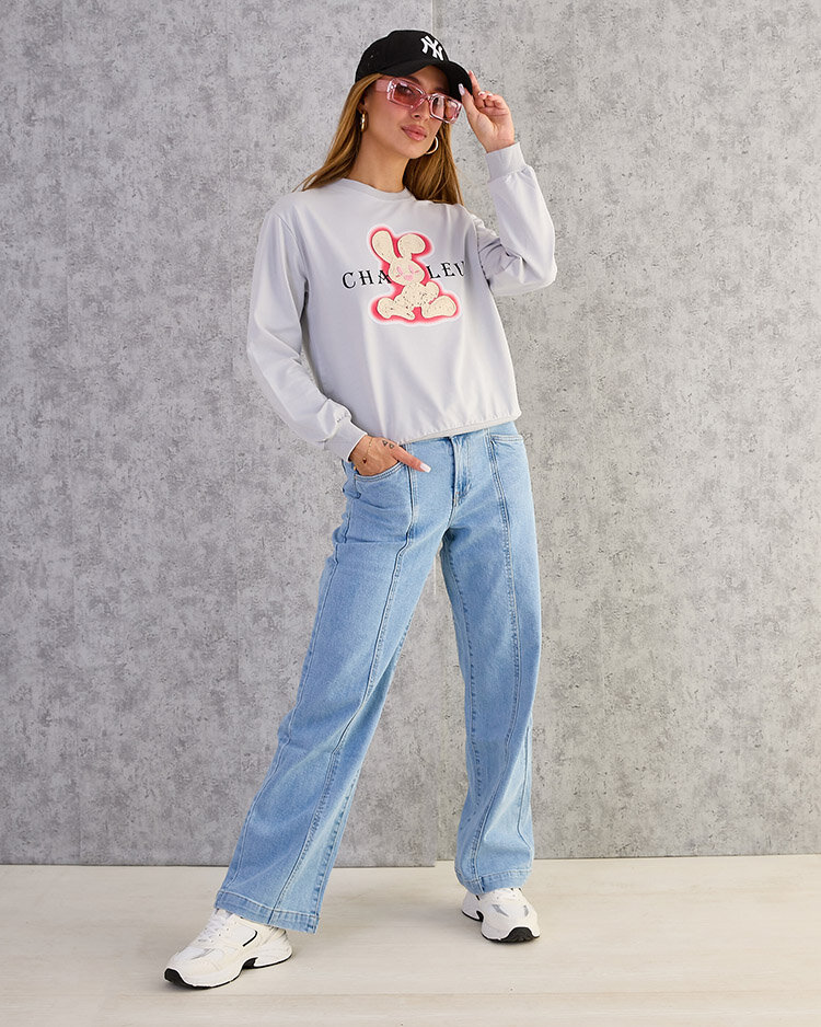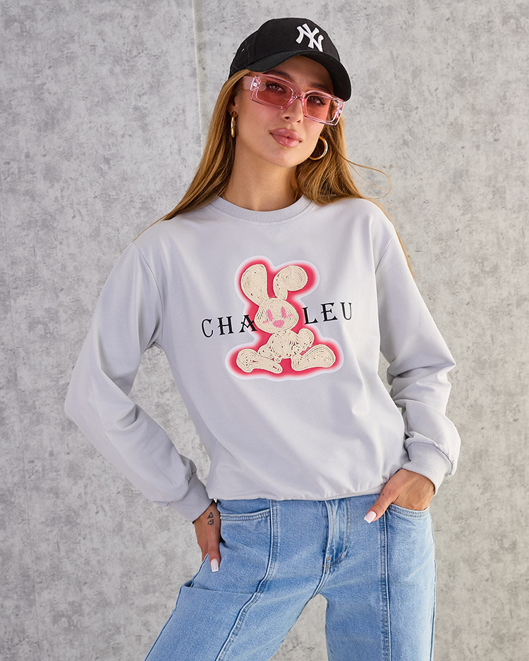 - Додайте стилю своєму вбранню з нашим тонким світшотом, прикрашеним нашивкою із зображенням зайчика. Вставляється через голову, з круглим вирізом і довгими рукавами. Ідеально підходить на кожен день, коли ви хочете почуватися невимушено, але стильно!