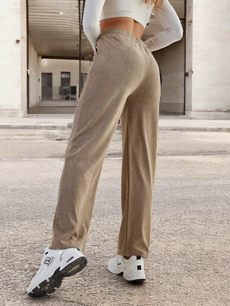 Royalfashion Жіночі широкі брюки в рубчик PLUS SIZE