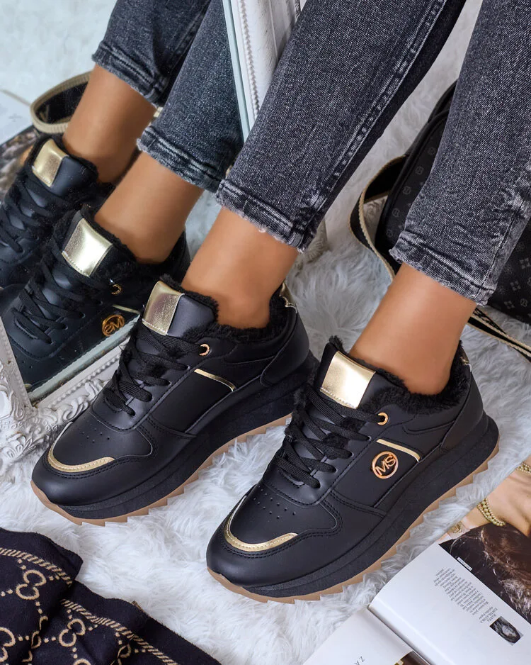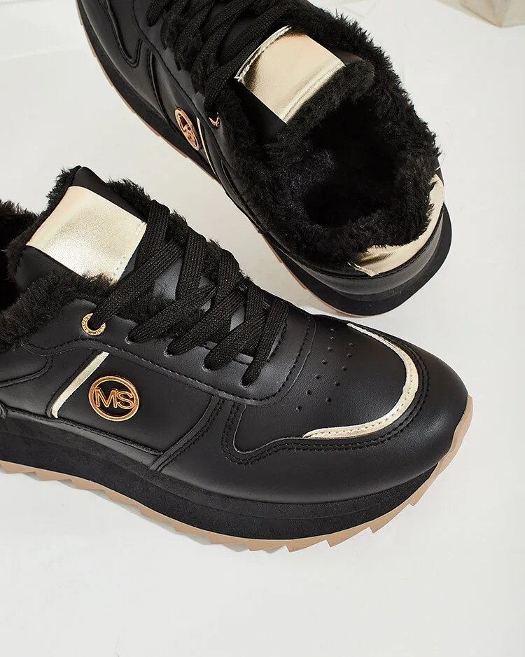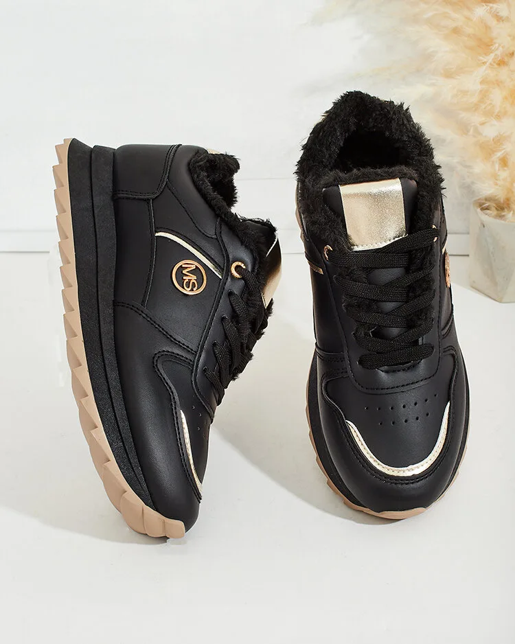 - Жіночі спортивні кросівки на потовщеній підошві. Верх на шнурівці, з екологічної шкіри. Внутрішня частина повністю утеплена хутром. Ідеальний варіант для холодних днів!