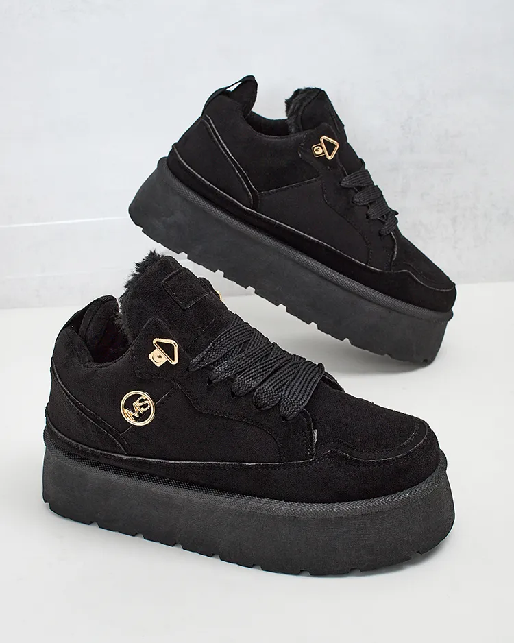 - Жіночі спортивні кросівки на платформі. Верх на шнурівці, виготовлені з екологічної шкіри. Внутрішня частина повністю утеплена хутром. Ідеально підійдуть до спортивного вбрання!