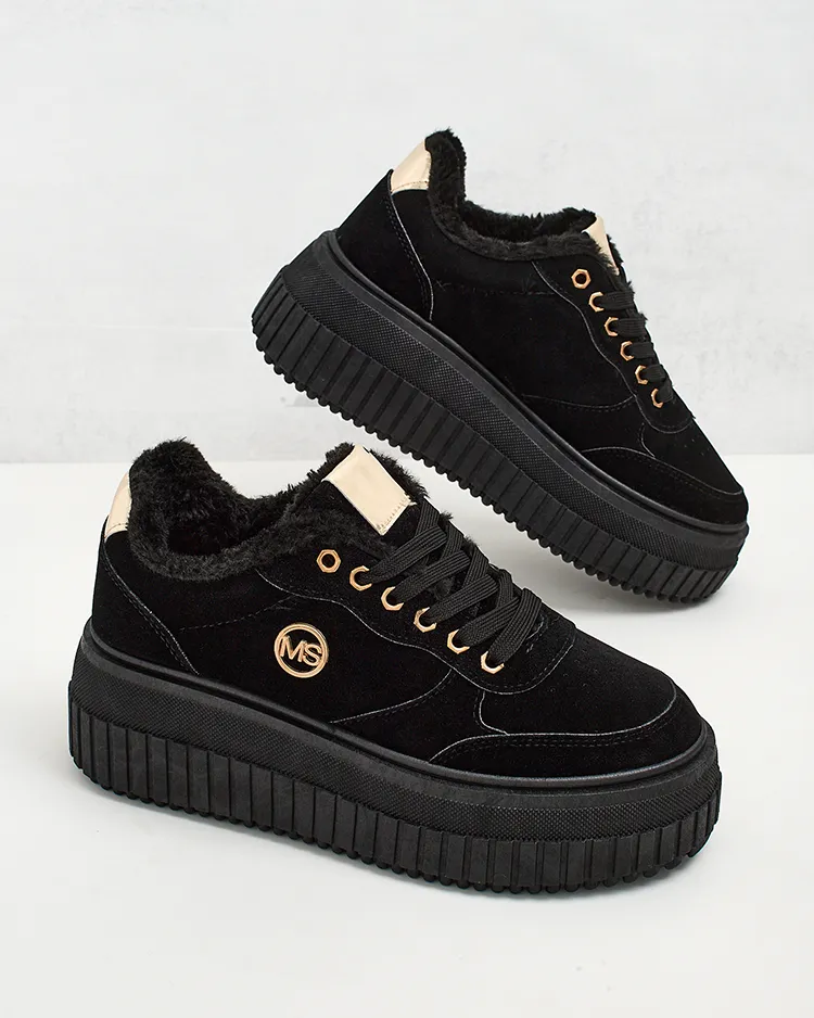 • Жіночі спортивні кросівки на потовщеній підошві. Верх на шнурівці, з екологічного нубуку. Устілка повністю утеплена хутром. Ідеальні для холодних днів!
