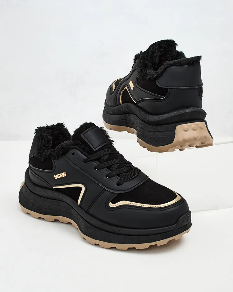 - Жіночі утеплені спортивні кросівки на потовщеній підошві. Верх на шнурівці із замші з елементами екошкіри. Всередині м'яке хутро. Супер доповнення до ваших зимових повсякденних образів!