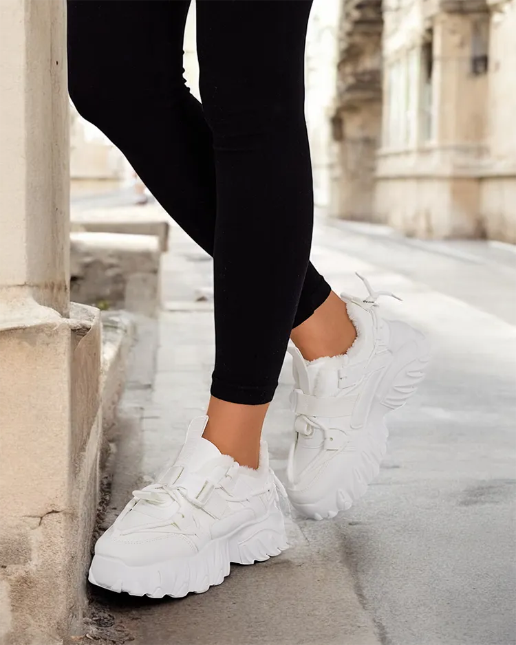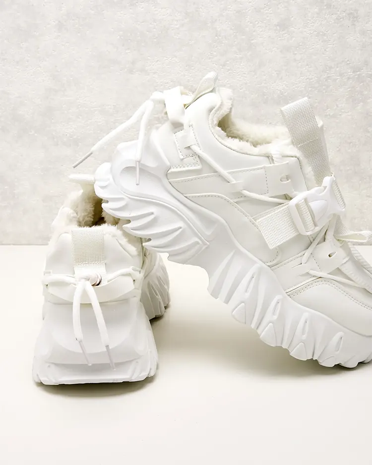 - Жіночі спортивні кросівки на потовщеній підошві. Верх на шнурівці, виготовлені з екологічної шкіри. Внутрішня частина повністю утеплена хутром. Ідеально підходять до спортивного вбрання!