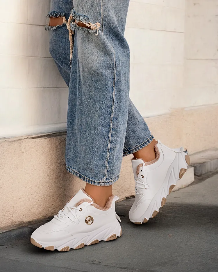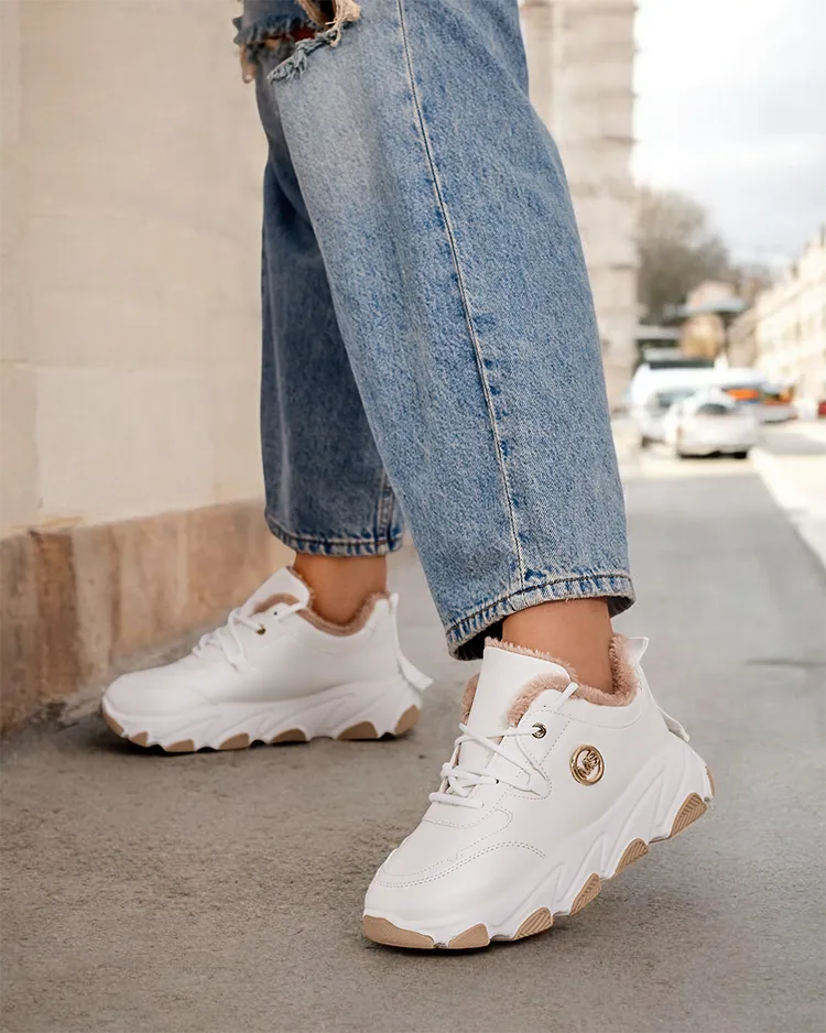 - Жіночі утеплені спортивні кросівки на товстій підошві. Верх на шнурівці з екологічної шкіри. М'яке хутро всередині. Супер доповнення до ваших зимових повсякденних образів!