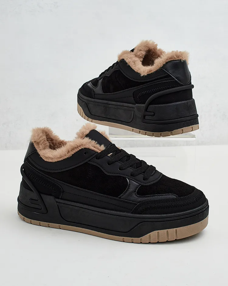 - Жіночі утеплені спортивні кросівки на потовщеній підошві. Верх на шнурівці з екошкіри та екозамші. Всередині м'яке хутро. Супер доповнення до ваших зимових повсякденних образів!
