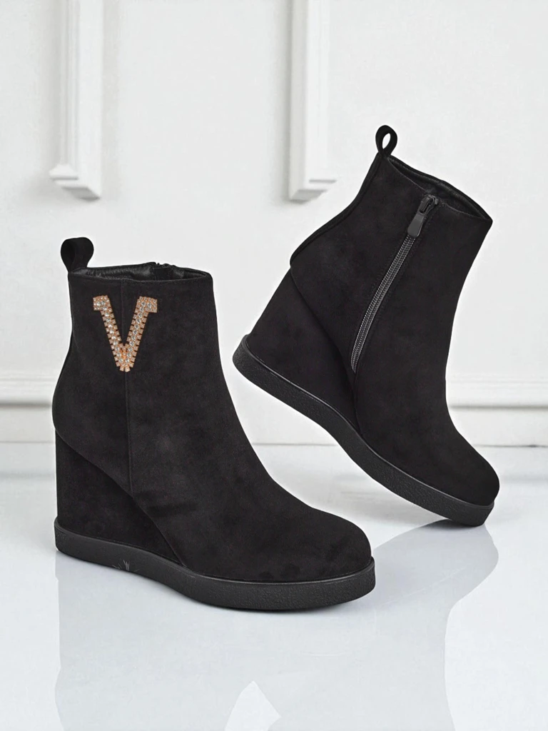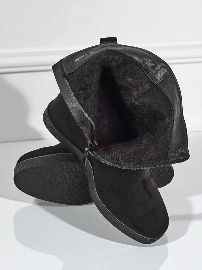 - Елегантні жіночі черевики на підборах, виготовлені з еко-замші. Взуття наповнене хутром зсередини. Ідеальний вибір на осінь!