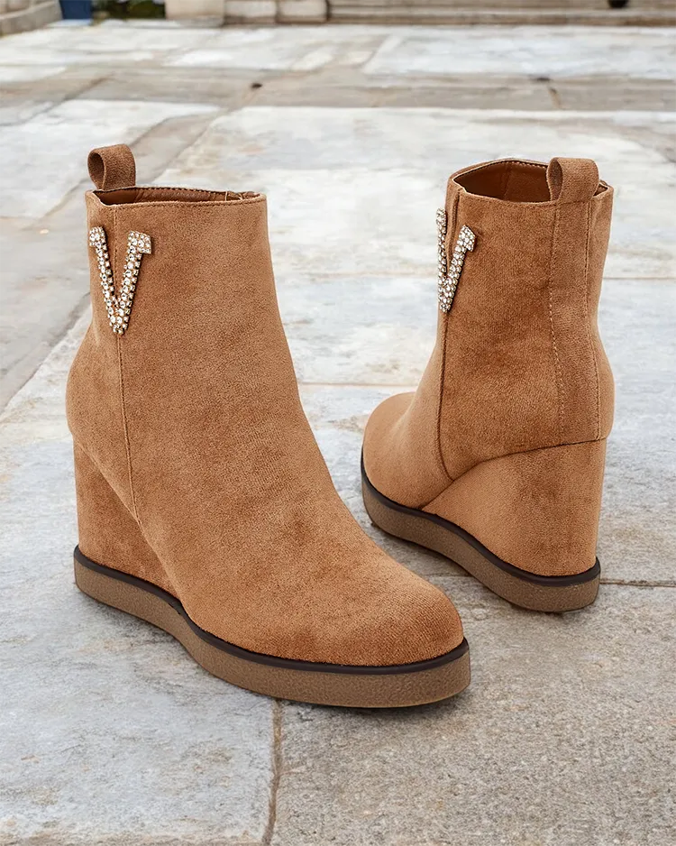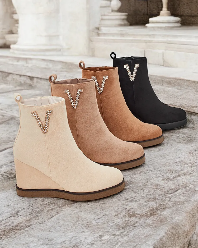 - Елегантні жіночі черевики на підборах, виготовлені з еко-замші. Взуття наповнене хутром зсередини. Ідеальний вибір на осінь!