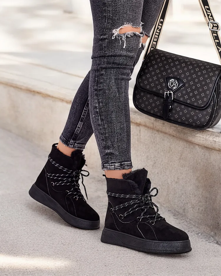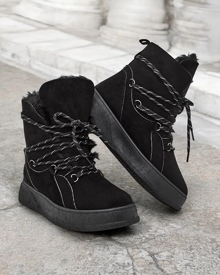 • Жіночі сніжні чоботи з верхом зі штучної замші. Усередині приємне хутро, чоботи на шнурівці та на шнурках. Ідеально підходить для зими!
