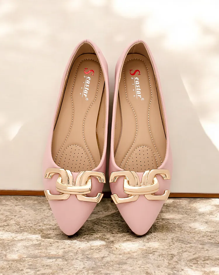 - Жіночі балетки на плоскому каблуці з eco-шкіри. Носок вузький і прикрашений металевою пряжкою. Відмінний додаток до вашого повсякденного гардеробу!