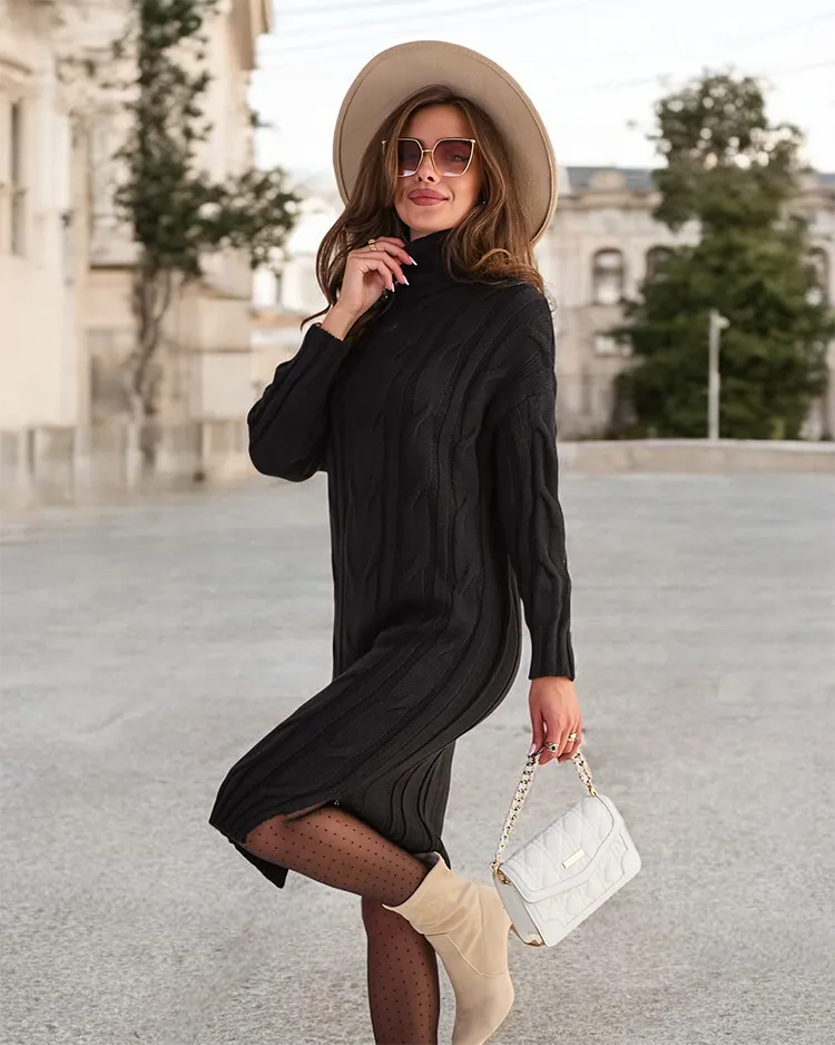 - Жіноча кофта a'la dress з високим комірцем та довгими рукавами. Виготовлена з комфортного в'язаного матеріалу. Обов'язковий аксесуар цього сезону!