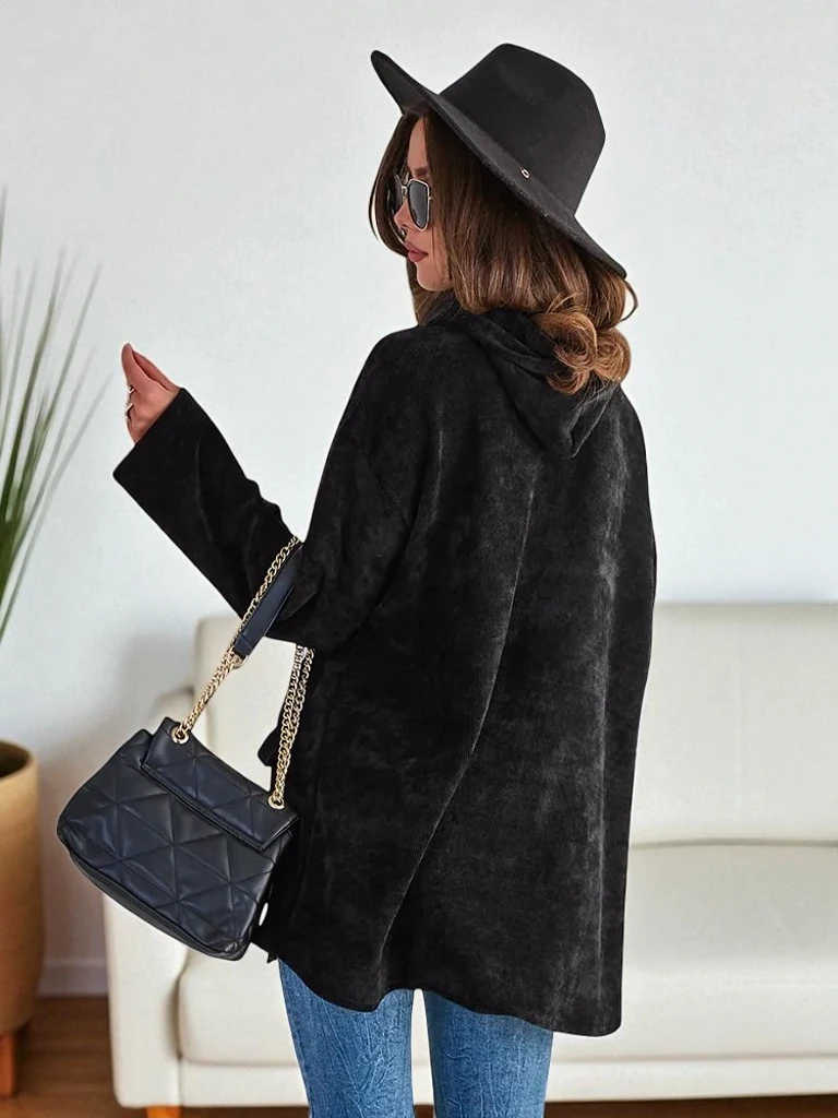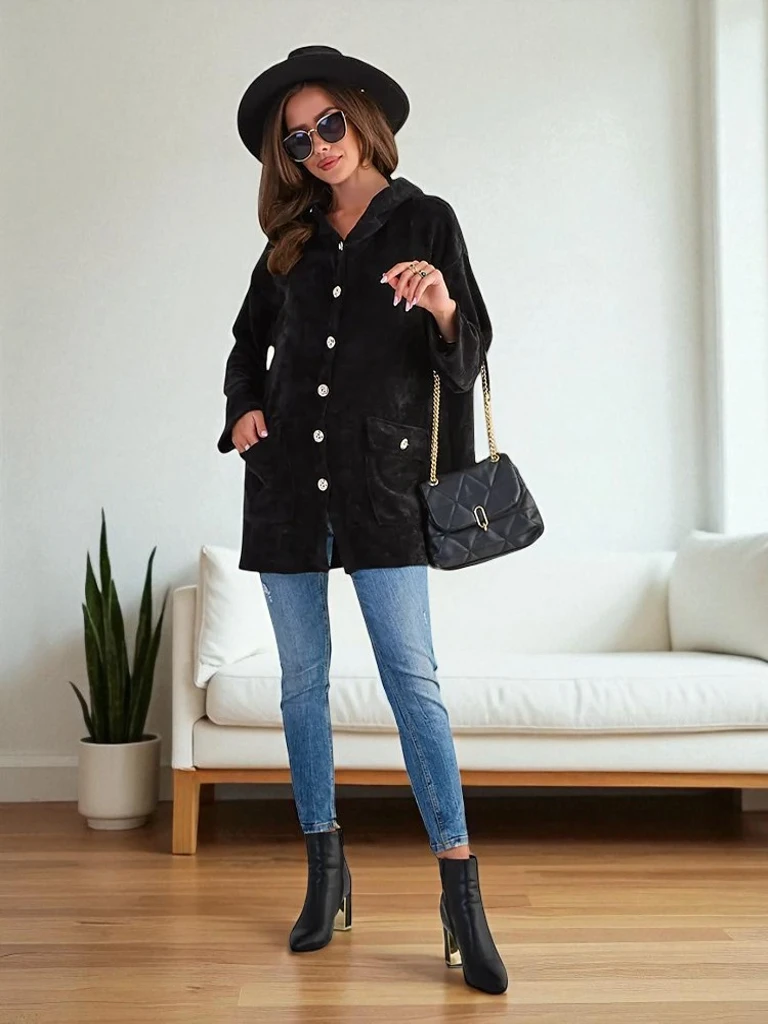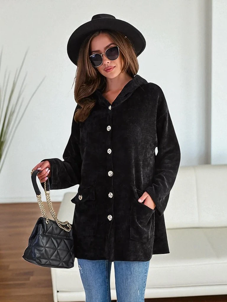 - Підкресліть свій стиль приємним, тонким кардиганом, який вражає ніжністю та елегантністю. Великі, золоті ґудзики додають йому вишуканого характеру. У моделі є капюшон і 2 кишені. Поєднайте його зі своїми улюбленими штанами!