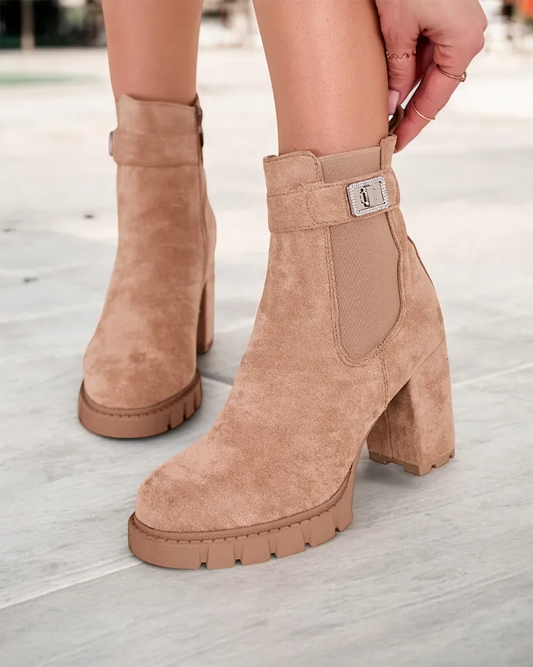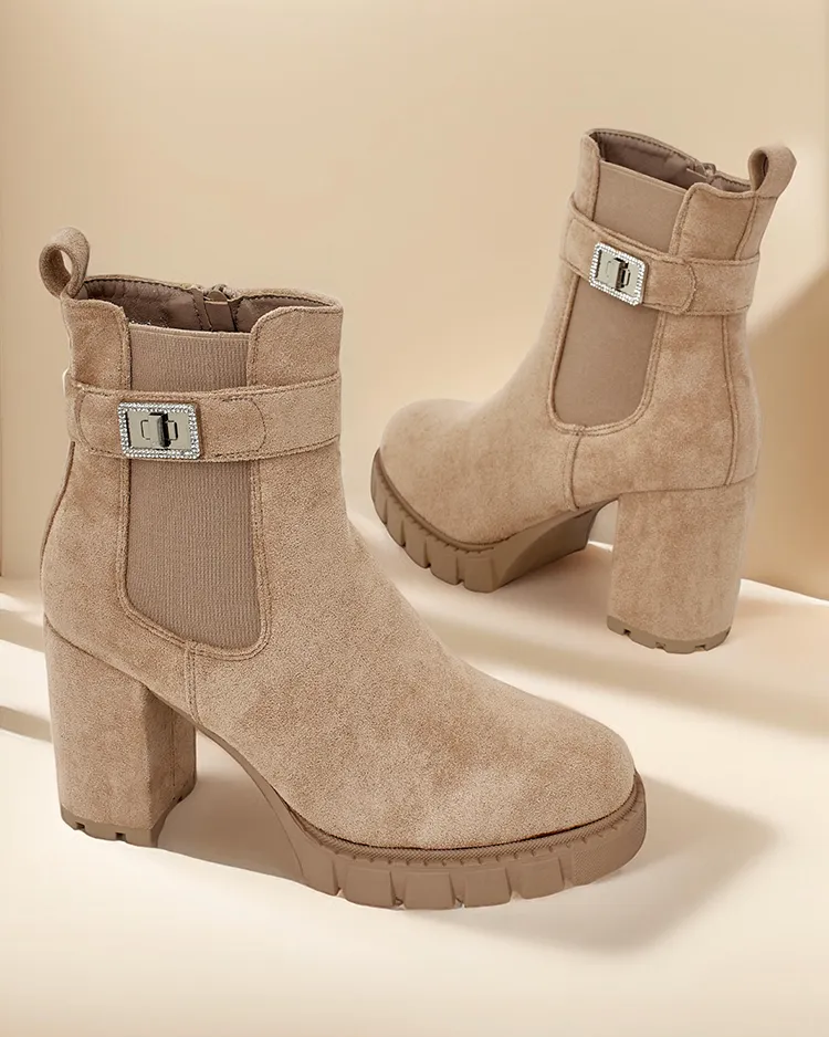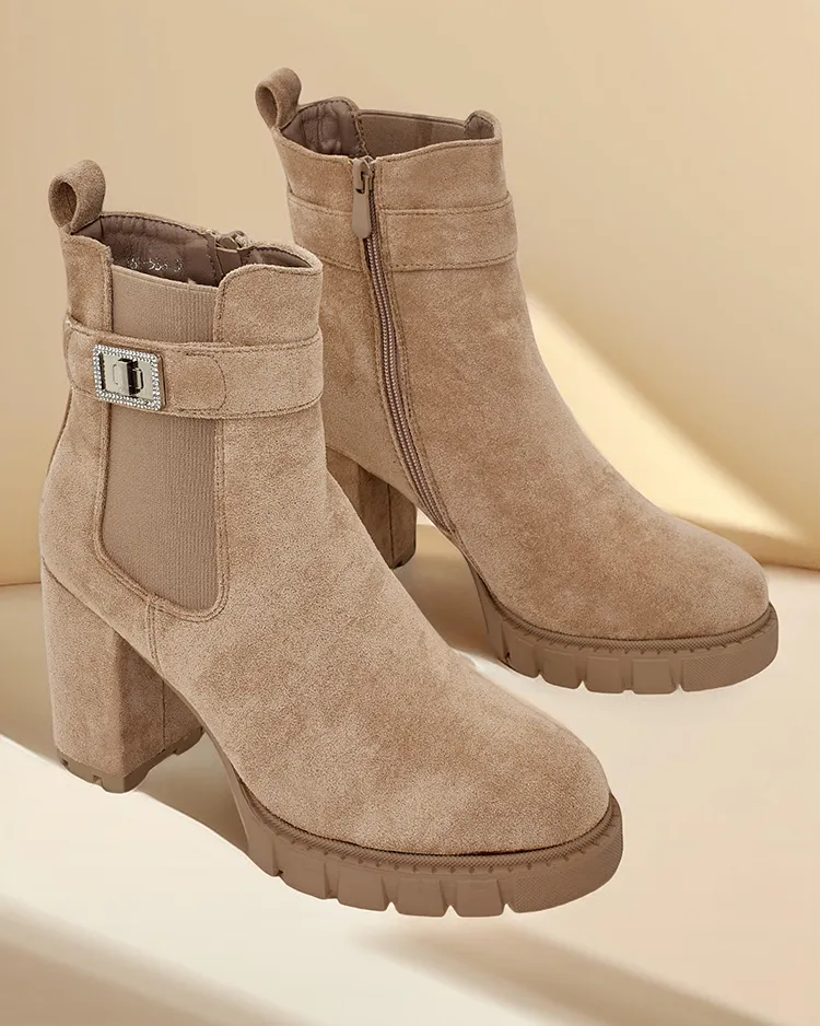 • Чоботи на посту - стиль і комфорт в одному. Модель з застібкою-блискавкою з круглим вензлем. Взуття з замші екологічної шкіри. Всередині наповнено хутром. Ідеально підходить для осінніх нарядів!