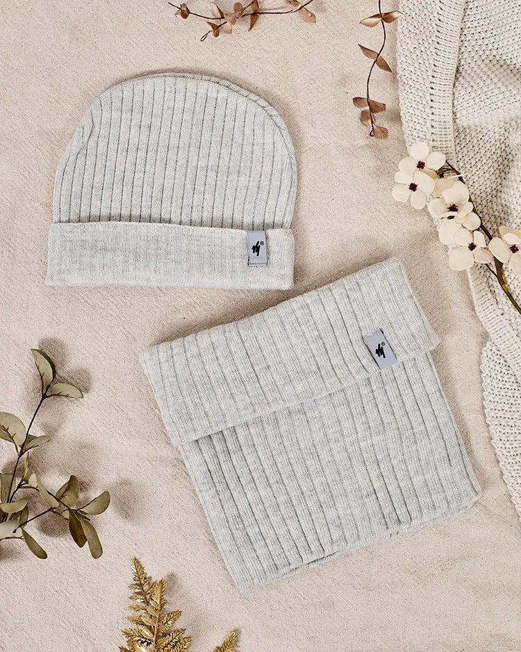 • Зимовий універсальний набір зі шапкою та трубчастим шарфом на шию. Набір виготовлений з ребристого трикотажу. Ідеальна основа для холодних та зимових днів!