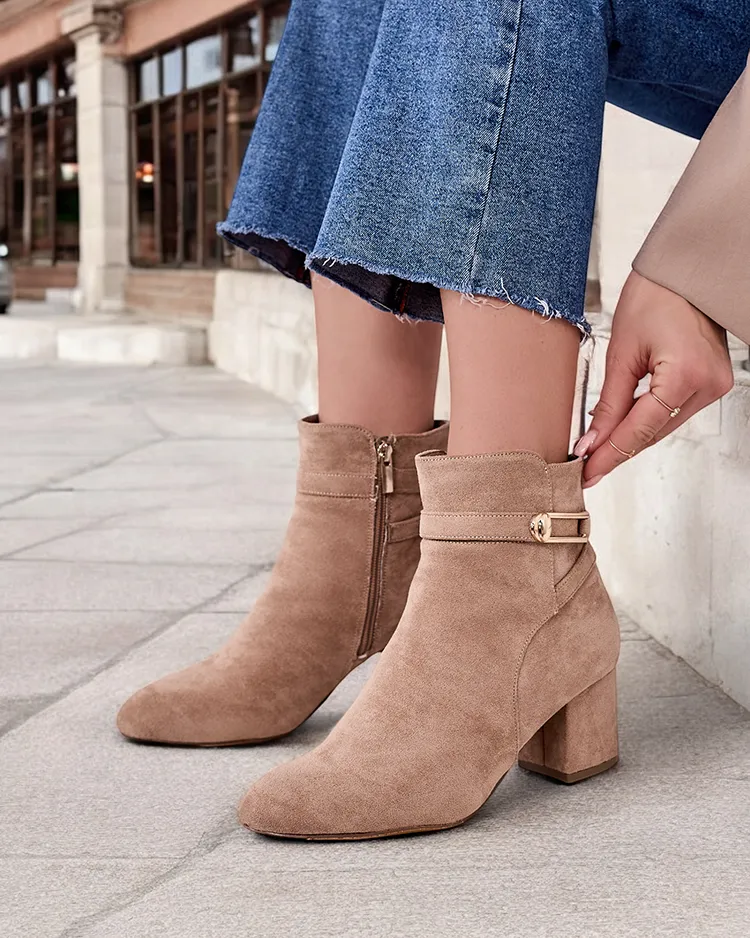 - Елегантні чоботи на стілетних підборах - ідеальне поєднання елегантності та комфорту. Модель виготовлена з еко-замші та має ніжну підкладку, надаючи стильний вигляд на будь-яку нагоду.