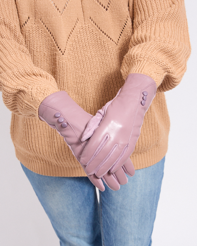 • Теплі жіночі рукавички з поєднання еко-шкіри та тканини. Всередині тонке хутрове підкладання. Сатиновий подшив на вказівному пальці дозволяє використовувати сенсорний екран.