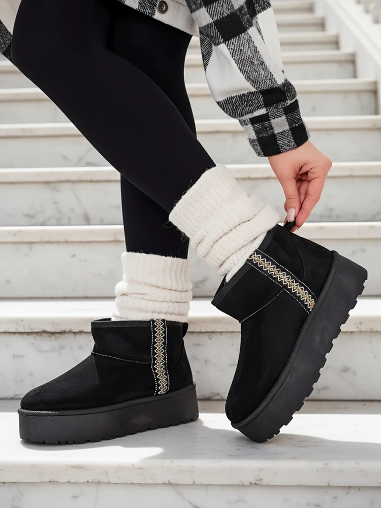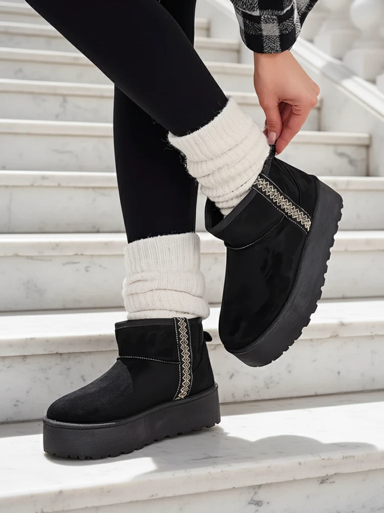 - Великі зимові чоботи для жінок на платформі. Верх виготовлений з синтетичної замші штучної шкіри, всередині обшитий штучним хутром. Ідеальна база для зими!