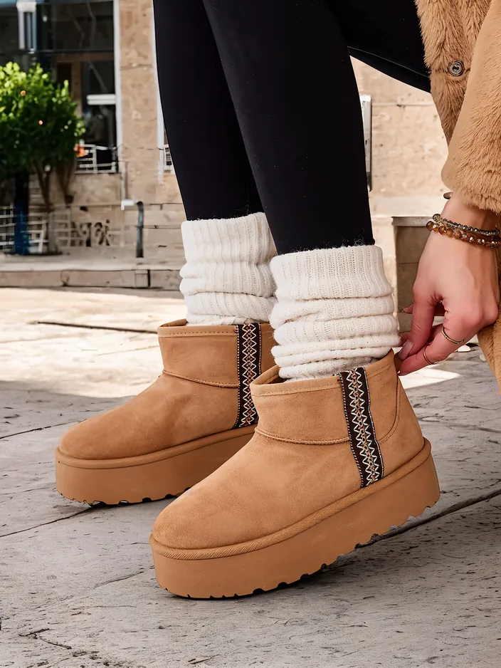 - Великі зимові чоботи для жінок на платформі. Верх виготовлений з синтетичної замші штучної шкіри, всередині обшитий штучним хутром. Ідеальна база для зими!