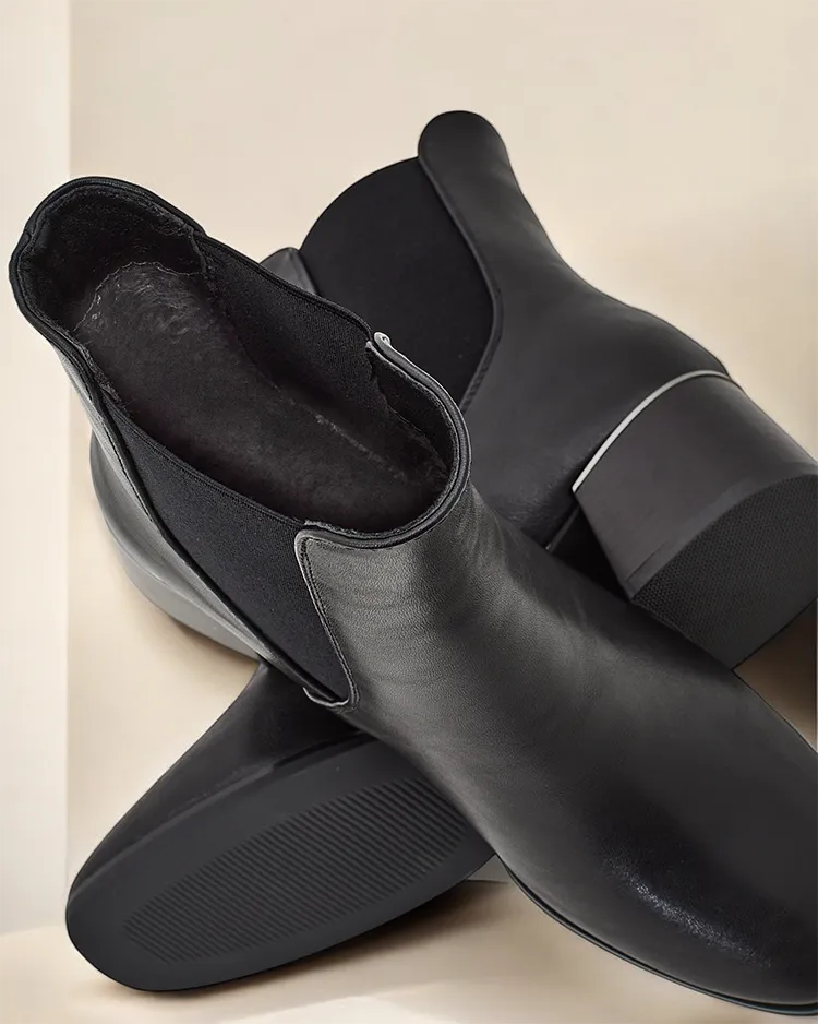 - Стильні жіночі чоботи на низьких підборах. Верх виготовлений з екошкіри. Всередині наповнений м'якою хутром. Модель без застібок, круглий носок. Відмінний вибір на осінь!