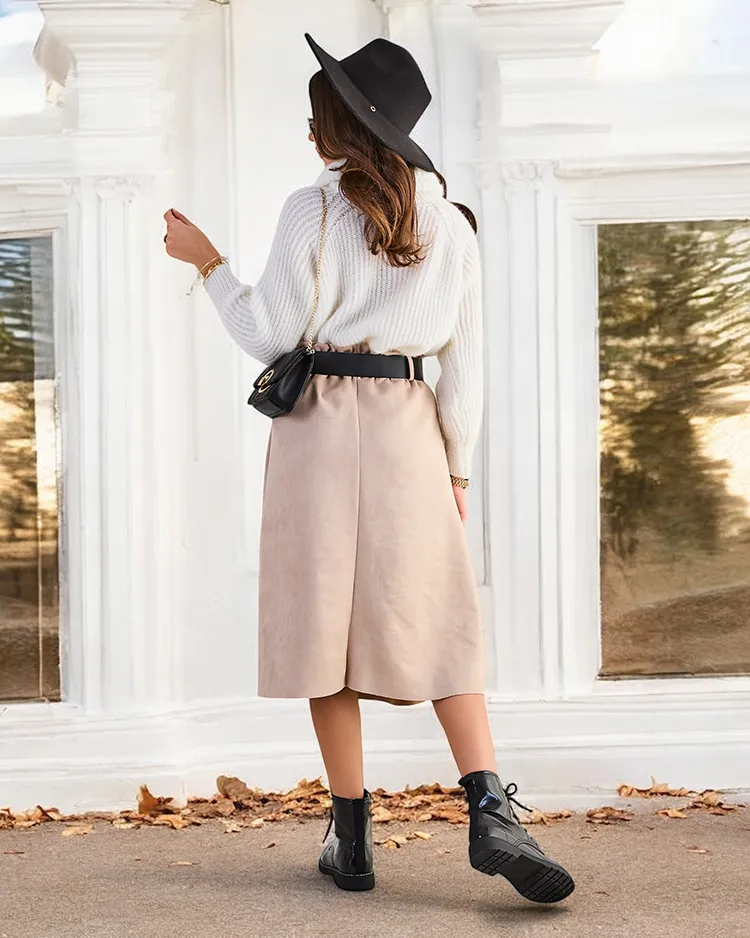 - Сукня-міді жіноча виготовлена з м'якої тканини a'la замші. Модель поставляється з поясом. Ідеальна база для багатьох особливих образів! УВАГА: Точність вимірювань (+/-) 1 см.