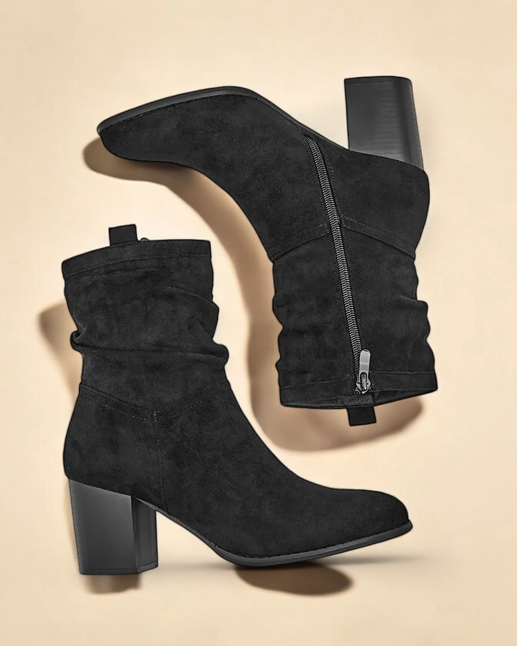 - Чоботи на оголошенні - стиль та комфорт в одному. Модель закривається на блискавку з круглим носком. Взуття виготовлено з екологічної замшоподібної шкіри. Устілка з приємної тканини. Ідеально підходить для осінніх образів!