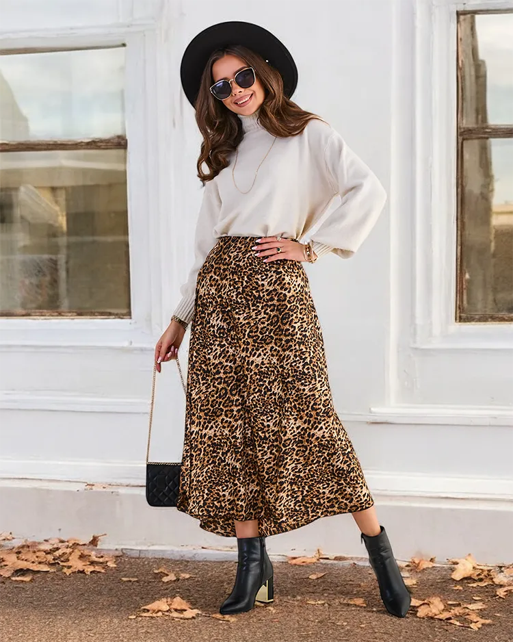 • Жіноча спідниця-міді з м'якої тканини, схожої на атлас. Модель має еластичну талію та декоративний друк. Ідеальна база для багатьох унікальних образів! ПРИМІТКА: Точність вимірювань (+/-) 1 см.