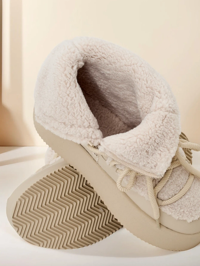 - Жіночі сніжні черевики зі стовбуром, виготовленим з поєднання еко-шкіри та приємної тканини. Усередині знаходиться приємна хутряна підкладка, взуття має блискавку та шнурований стовбур. Ідеально підходять для зими!