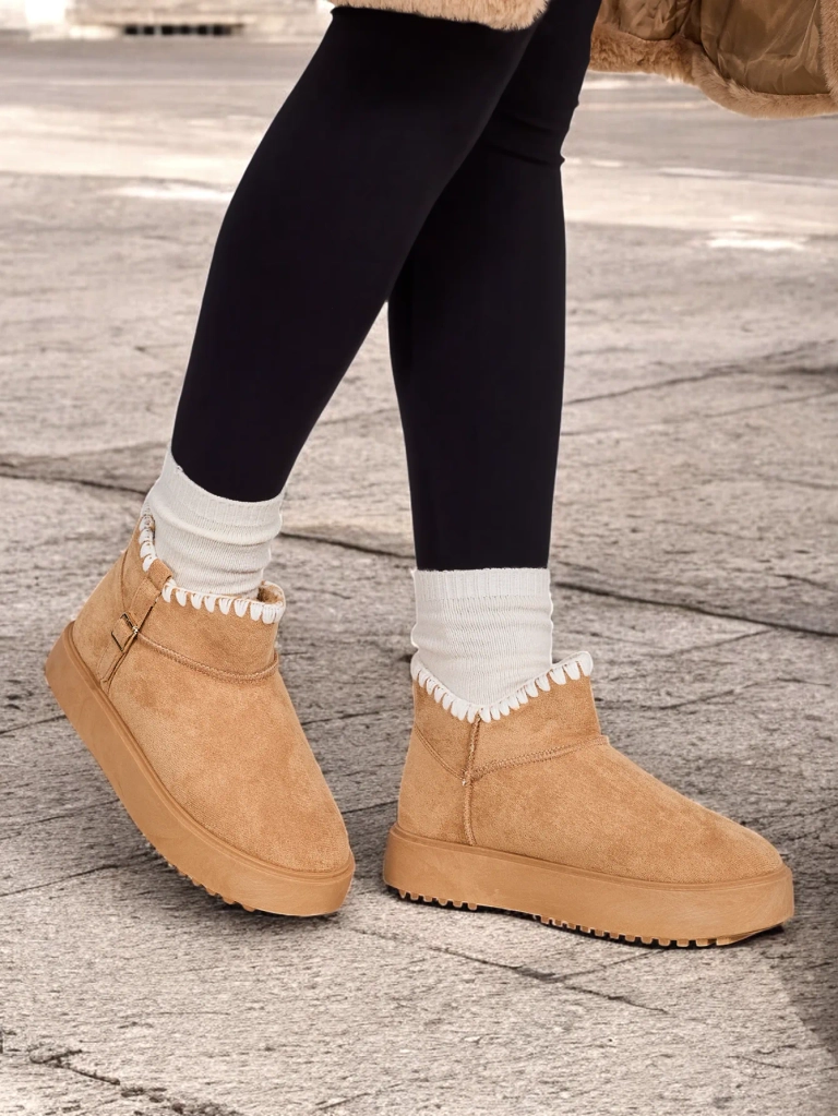 - Великі жіночі зимові платформені сніжні чоботи. Верх виготовлений з шкіроподібної екологічної шкіри, підкладений хутром. Ідеально підходить для зими!