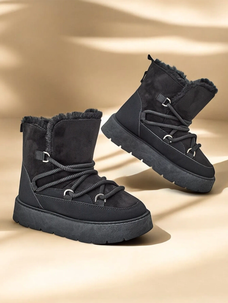 - Жіночі сніжні чоботи з верхом з еко шкіри. Підкладка зручною хутром всередині, чоботи на шнуровці. Ідеально підходить для зими!
