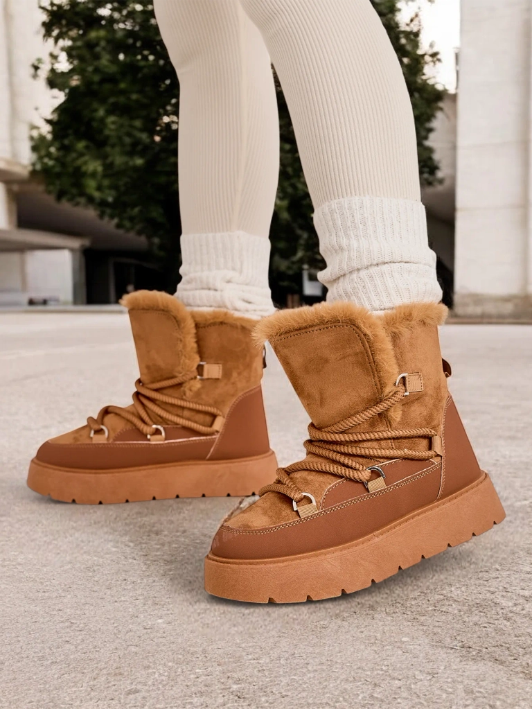 - Жіночі чоботи з верхом з замші еко-шкіри. Підкладка з приємного хутра всередині, чоботи на шнурках. Ідеально підходить для зими!