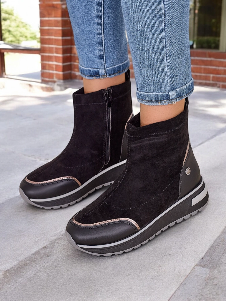 - Жіночі платформені ботильйони, виготовлені з екошкіри замші. Ботильйони застібаються на блискавку, обшиті зручним хутром всередині. Ідеально підходять на осінь!