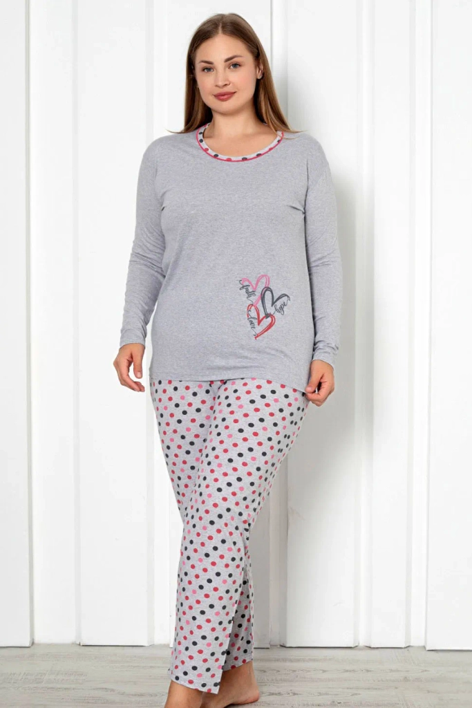 Royalfashion Жіночий бавовняний комплект піжами з горошком РОЗМІР ПЛЮС