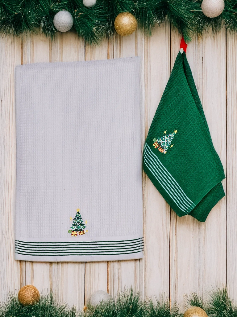 • Набір бавовняних ванних рушників. У наборі 2 штуки розміром 40 см х 60 см. Рушники чудово відтворять атмосферу Різдва!