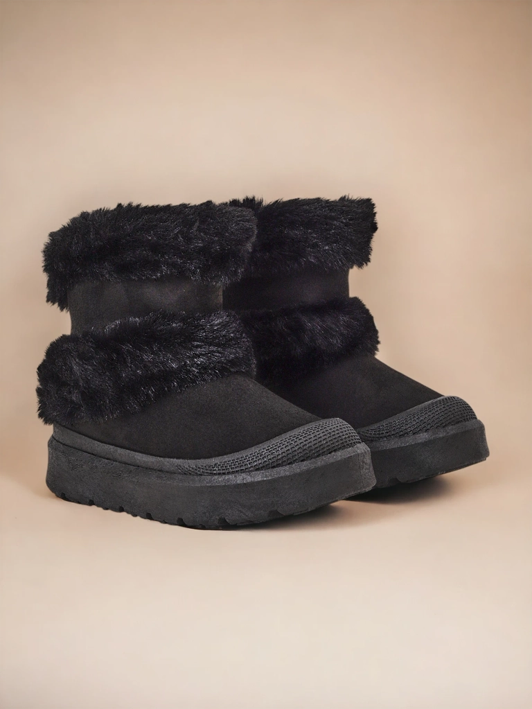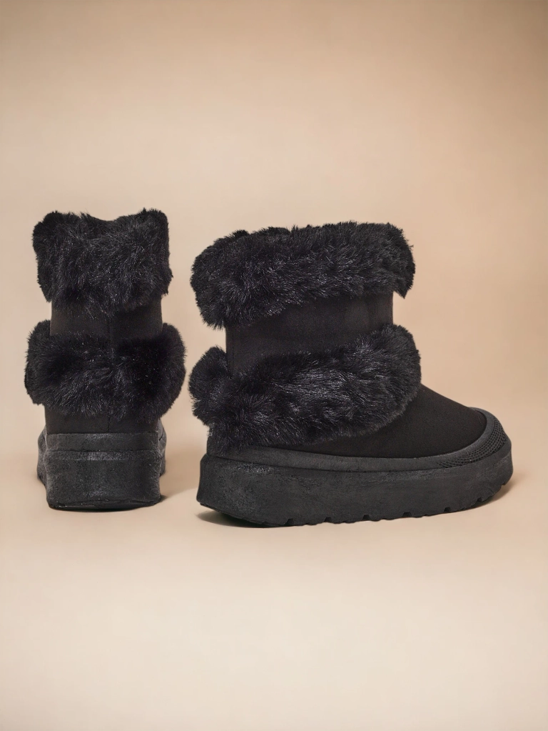 - Жіночі сніжні чоботи з верхом, виготовленим з комбінації еко-шкіри та зручної тканини. Усередині приємна хутрова підкладка. Ідеально підходять для зими!