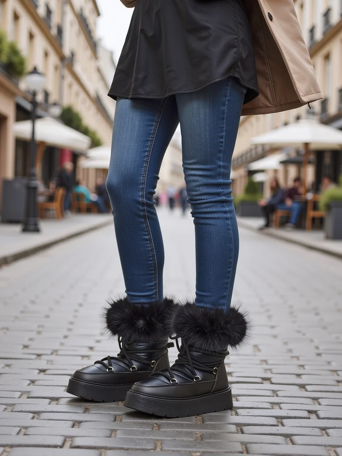 - Жіночі снігові черевики з халявою, виготовленою з комбінації матеріалу, схожого на брезент, та еко-шкіри. Всередині приємне хутро, черевики легко взувати та шнурувати. Ідеально підходять для зими!