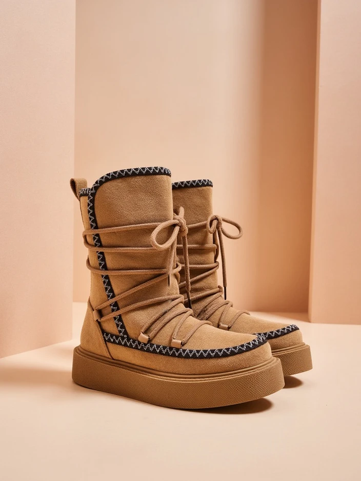 - Жіночі зимові черевики з халявою з замшевої еко-шкіри. Всередині м'яка ізоляція, а взуття на шнурках. Ідеально підходять для зими!