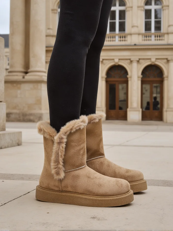 - Відмінні жіночі зимові чоботи на низькій платформі. Верх виготовлений з штучного замшу, а внутрішня частина обшита хутром. Ідеальна основа для зими!