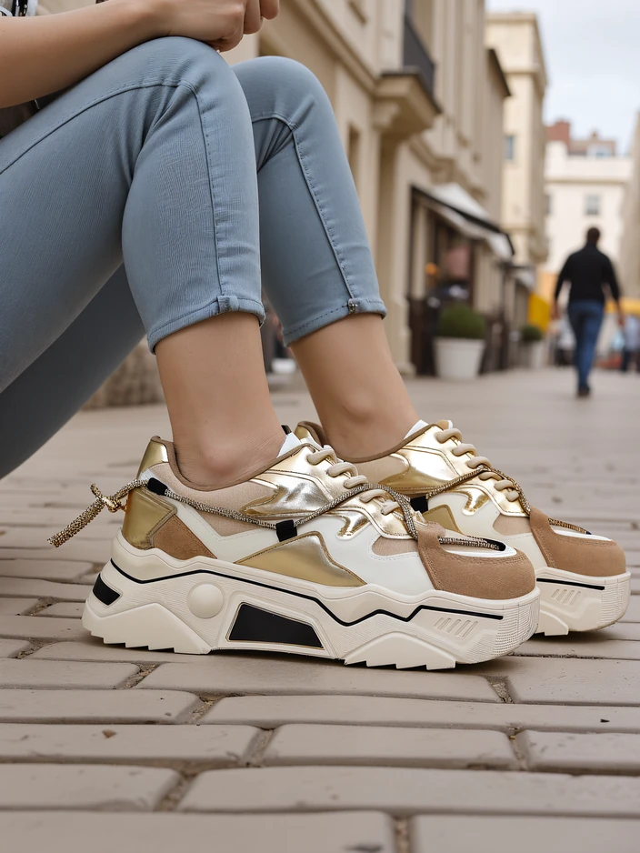 • Жіночі кросівки з плоскою підошвою, ідеальне поєднання стилю та комфорту. Взуття виготовлене з екошкіри. Модель на шнурівці з декоративним шнурівкою, прикрашена стразами. Ідеально підходить для активних людей!