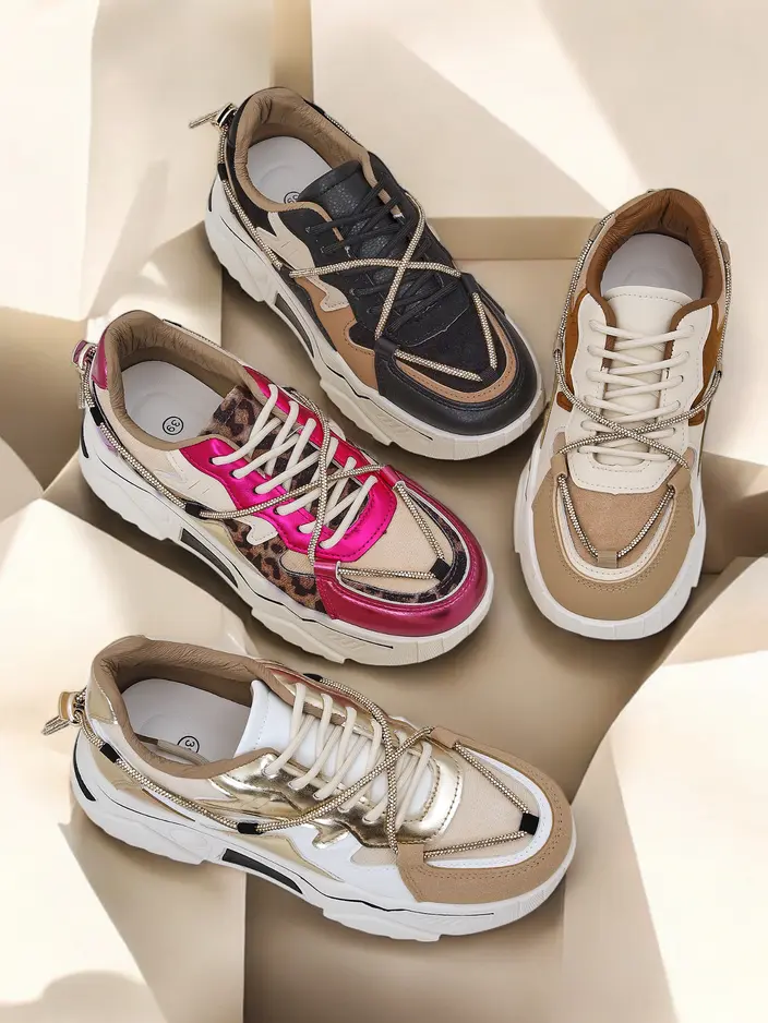 - Жіночі кросівки з плоскою підошвою, ідеальне поєднання стилю та комфорту. Взуття виготовлене з екошкіри. Модель на шнурівці з декоративним шнурівкою, прикрашена стразами. Ідеально підходить для активних людей!