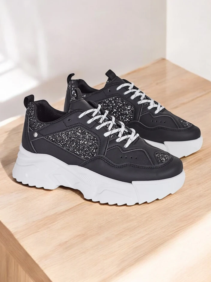 • Жіночі спортивні черевики у вигляді кросівок з плоскою підошвою. Виготовлені з еко-шкіри з блискучими вставками. Устілка — еко-шкіра. Прекрасне доповнення до ваших повсякденних повсякденних образів!