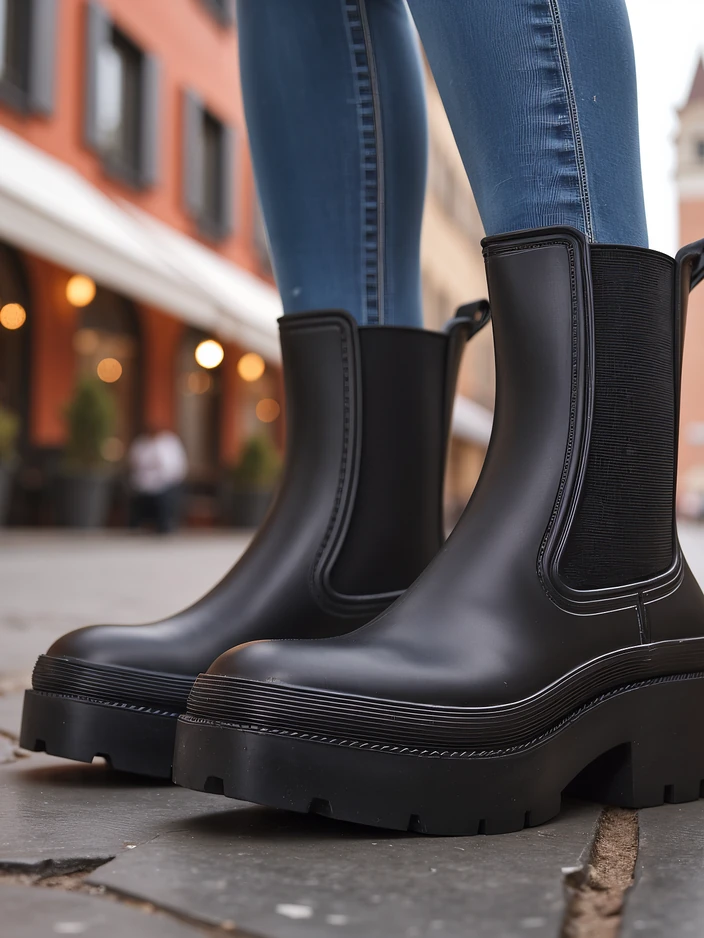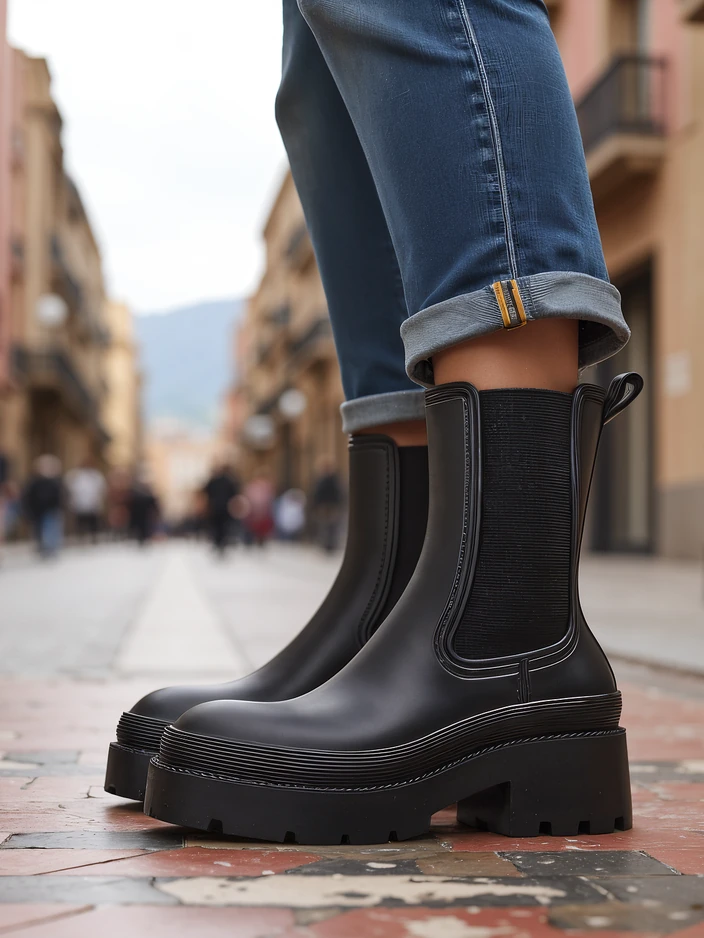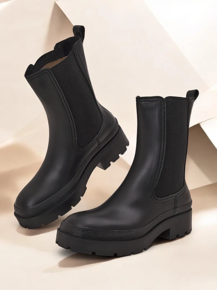 - Класичні жіночі черевики на щиколотках без застібки з плоским каблуком, виготовлені з каучукового матеріалу. Всередині є текстильна устілка. Еластичні вставки по боках. Ідеально підходять для осінніх дощових днів!