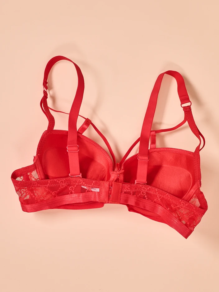 • Винятковий бюстгальтер-пуш-ап для жінок. Делікатна обробка мереживом і декоративними бретельками додає елегантності. Виріб застібається на спині на гачки. Бретельки регулюються.
