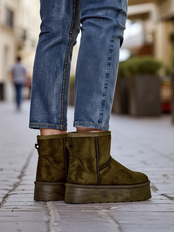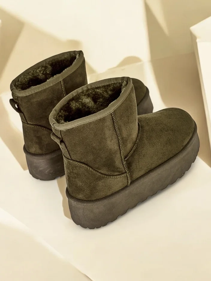 • Чудові зимові черевики на платформі для жінок. Верх виконаний з штучної замші, а всередині оброблений хутром. Ідеальна основа для зими!