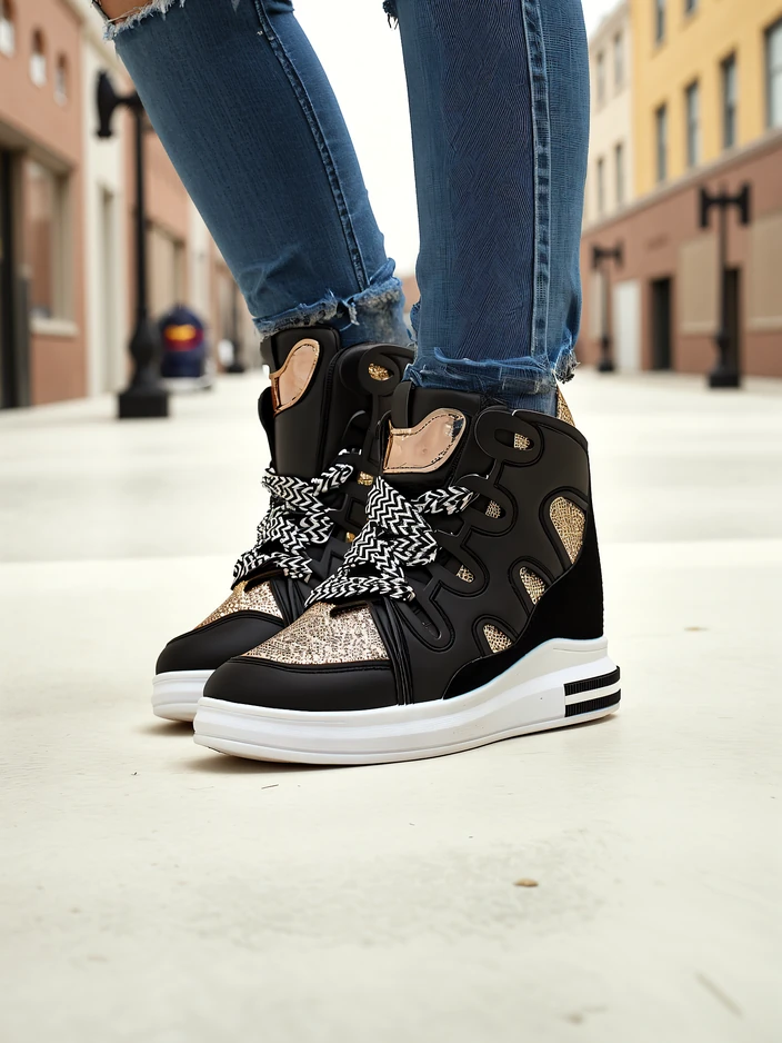 Royalfashion Високі спортивні черевики для жінок з прихованим каблуком Oblaffi