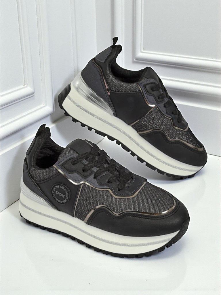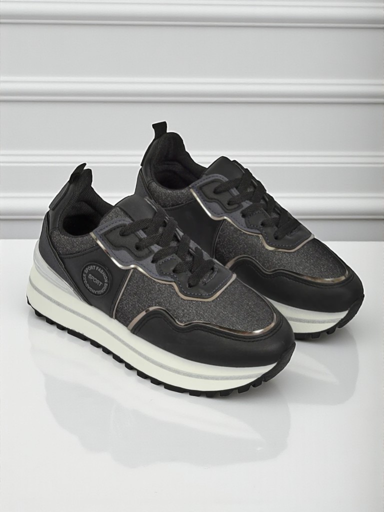 • Жіночі спортивні снікерси на товстій підошві. Виготовлені з екологічної шкіри та блискучого матеріалу, а також тканинної устілки. Чудовий додаток до твоїх повсякденних образів у стилі casual!