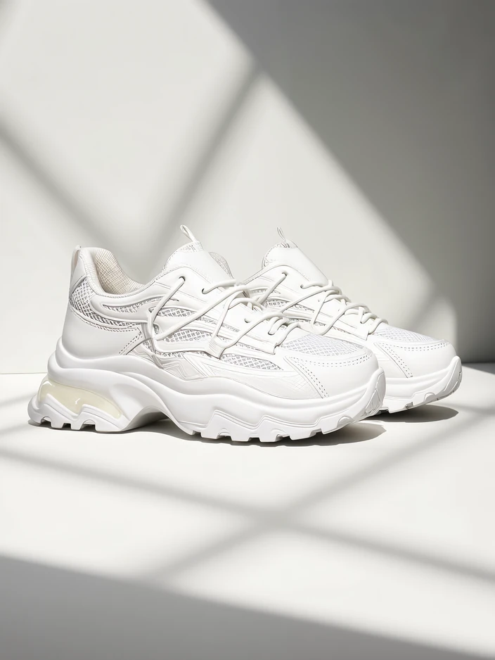 - Жіночі спортивні кросівки з плоскою підошвою, виготовлені з еко-шкіри та тканини з гумовими вставками. Модель має тканинну устілку та товстішу підошву. Скомбінуйте їх з широкими штанами та сорочкою!